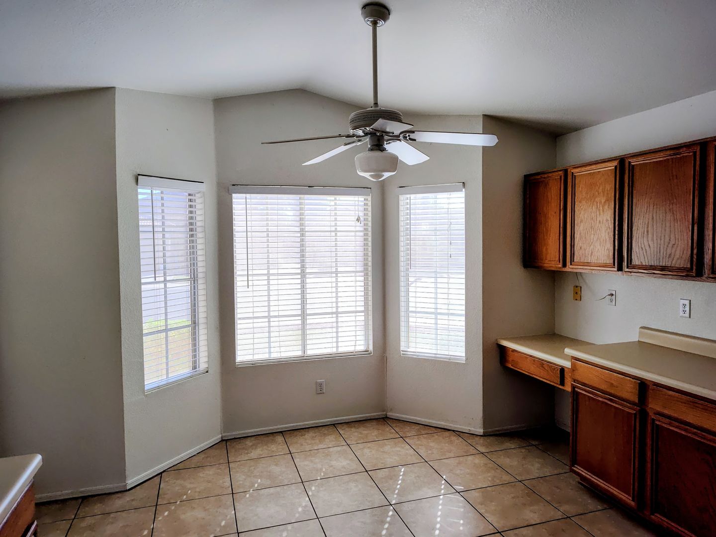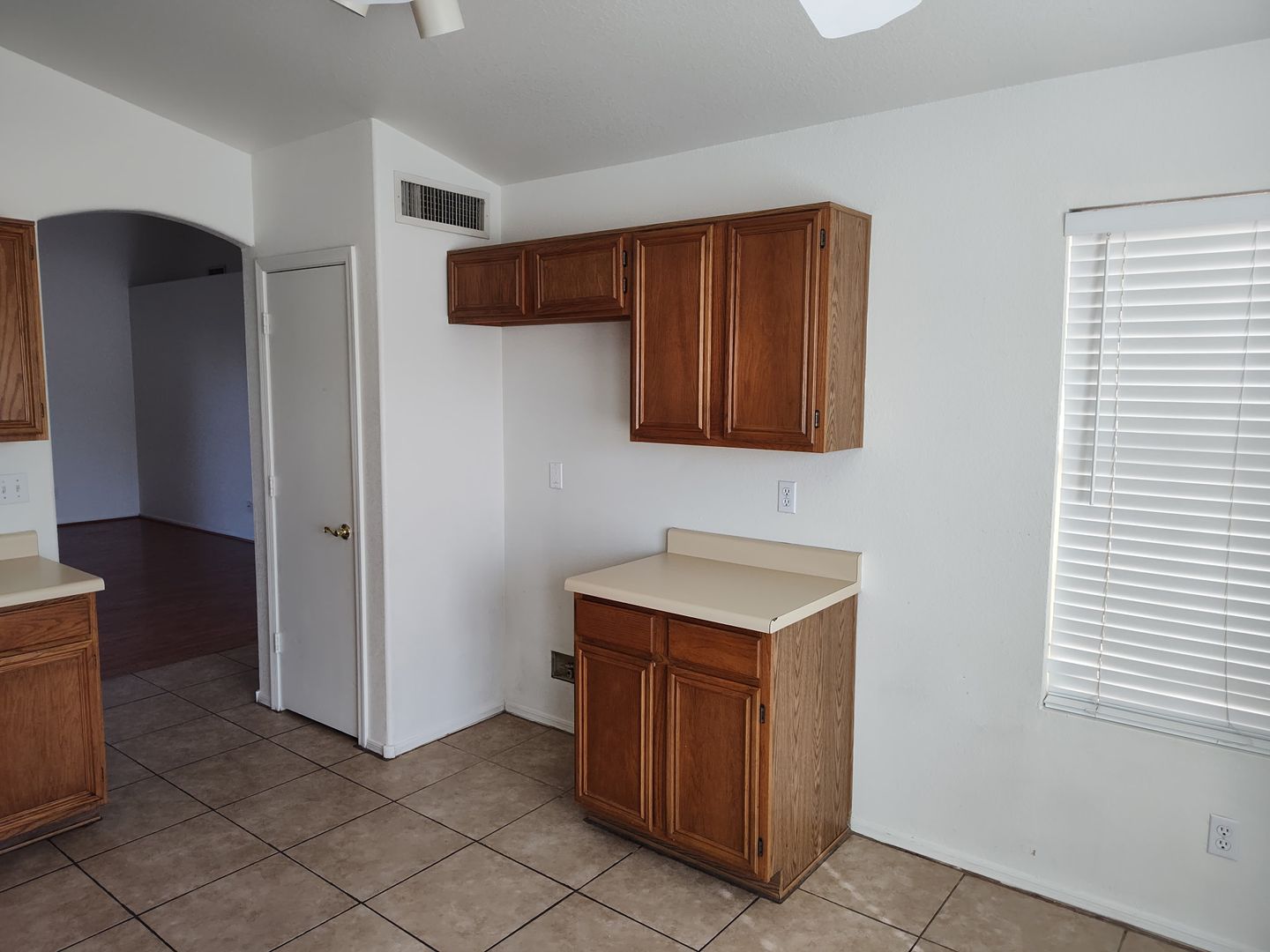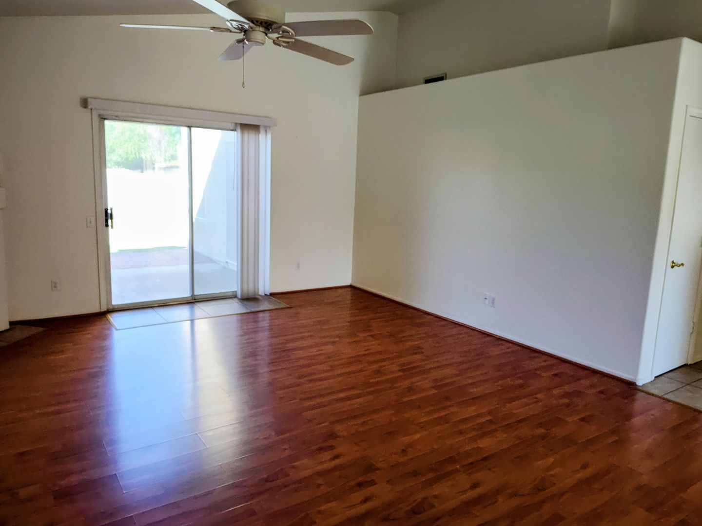 Three Bedroom, 2 baths, Double Garage, Over 1500 sq. ft. Tiled entry,Kitchen and baths. Laminated wood flooring in Great Room and all bedrooms. Formal dining area in Great room, Eat in Kitchen. Large Master, bath w/double sinks, walk in closet. Ceiling fans, Double garage, corner lot. Front Yard Landscape included with rent. Sorry but no pets. Property does not include Washer/Dryer, Refrigerator.